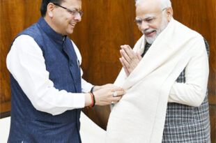 देहरादून (सू0वि0)। मुख्यमंत्री पुष्कर सिंह धामी ने संसद भवन, नई दिल्ली में प्रधानमंत्री नरेन्द्र मोदी से शिष्टाचार भेंट की। मुख्यमंत्री ने सशक्त उत्तराखण्ड/२५ के क्रम में राज्य सरकार के रोडमैप को साझा करते हुए प्रधानमंत्री जी का मार्गदर्शन प्राप्त किया। मुख्यमंत्री ने प्रधानमंत्री को लोहाघाट स्थित मायावती आश्रम आने के …