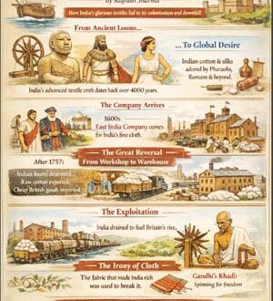 कैसे भारत के कपड़ों ने ही उसकी गुलामी की कहानी बुनी: पहले भाग में हमने देखा कि कैसे भारत के बौद्धिक उपहारों—शून्य, बीजगणित और खगोल विज्ञान—ने यूरोप को जगाया और बाद में उन्हीं का इस्तेमाल भारत के खिलाफ किया गया। अब इस ‘बूमरैंग’ (पलटवार) का दूसरा अध्याय सामने आता है: भारत की सबसे बेशकीमती रचना—उसका बेजोड़ कपड़ा।